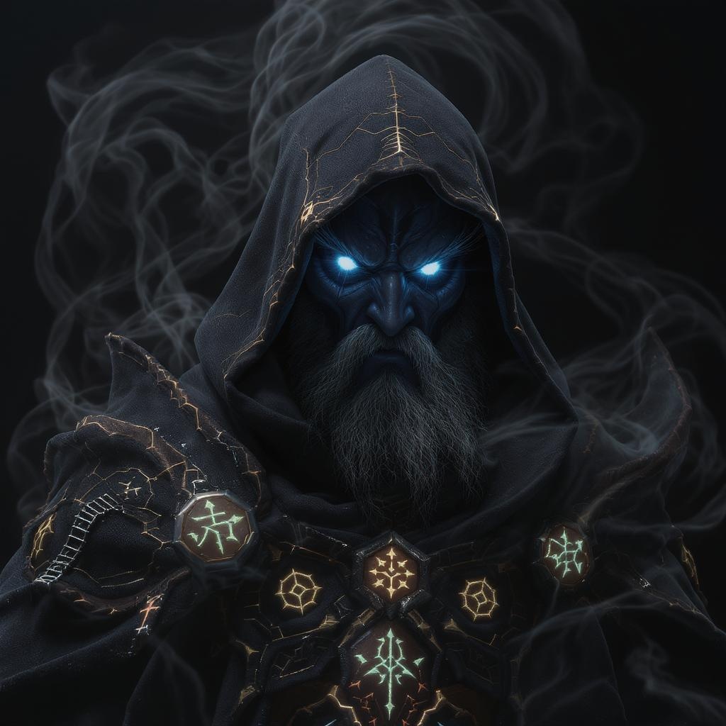 Void arcanist enveloped in swirling mist, with photorealistic features, crafted using octane render and unreal engine; the character's attire is adorned with intricate patterns and glowing runes, reflecting hyper detailed craftsmanship. Volumetric lighting casts an ethereal glow, enhancing the depth of the scene with HDR precision. The arcanist's eyes shimmer with otherworldly energy, set against a dark, mysterious backdrop, emphasizing the sense of power and enigma.