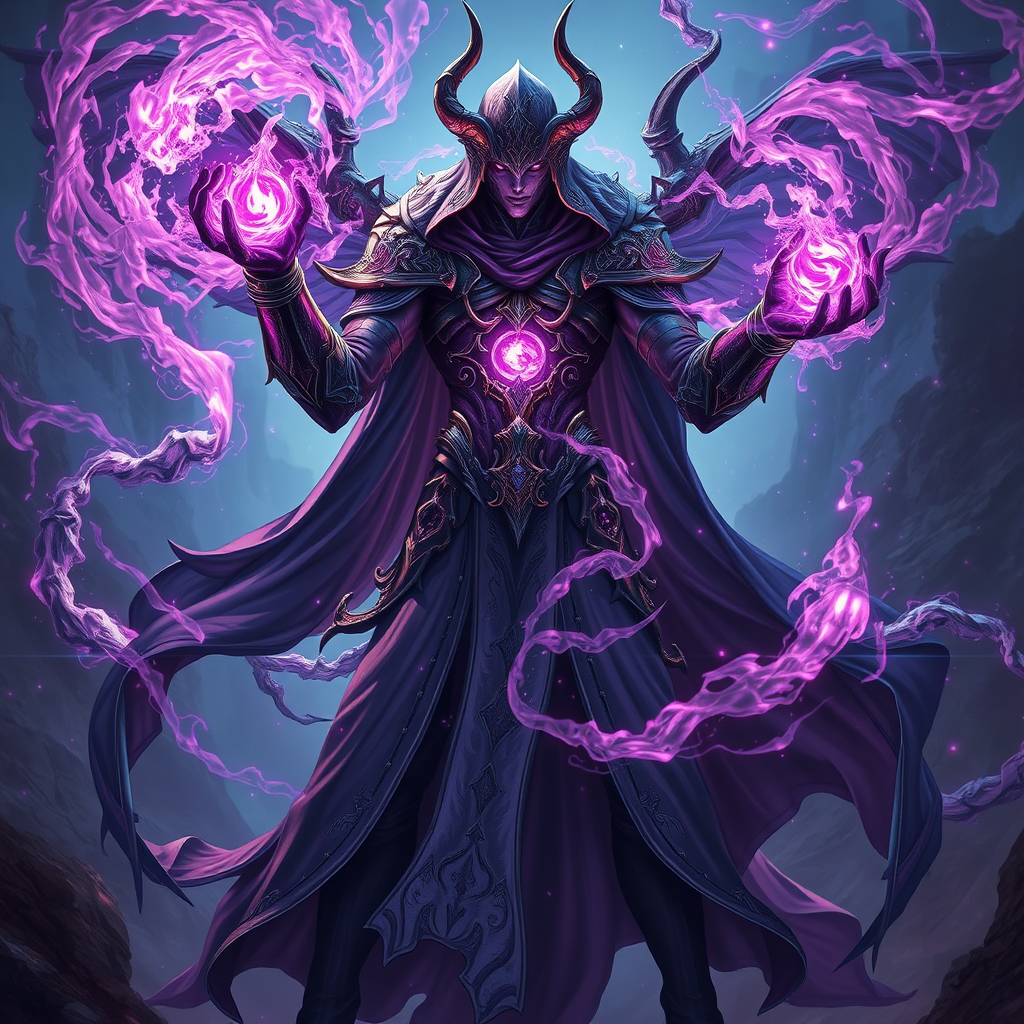Void arcanist in a dynamic full body shot, hyper detailed with intricate magical elements swirling around, enhanced by volumetric lighting casting ethereal glows, set in a mystical fantasy realm, rendered in high-definition fantasy art style with subtle creative enhancements, octane-inspired illumination effects.
