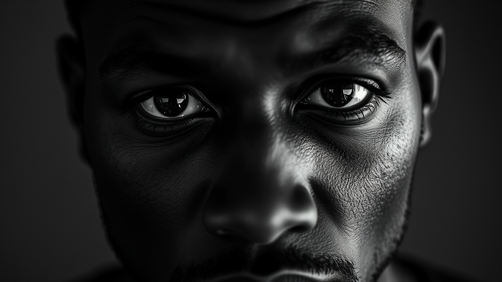 wallpaper high texture portrait of a black man gazing intently at the camera intimate close-up monochrome shot with depth captured by Leica 50mm lens wide open at f1.4