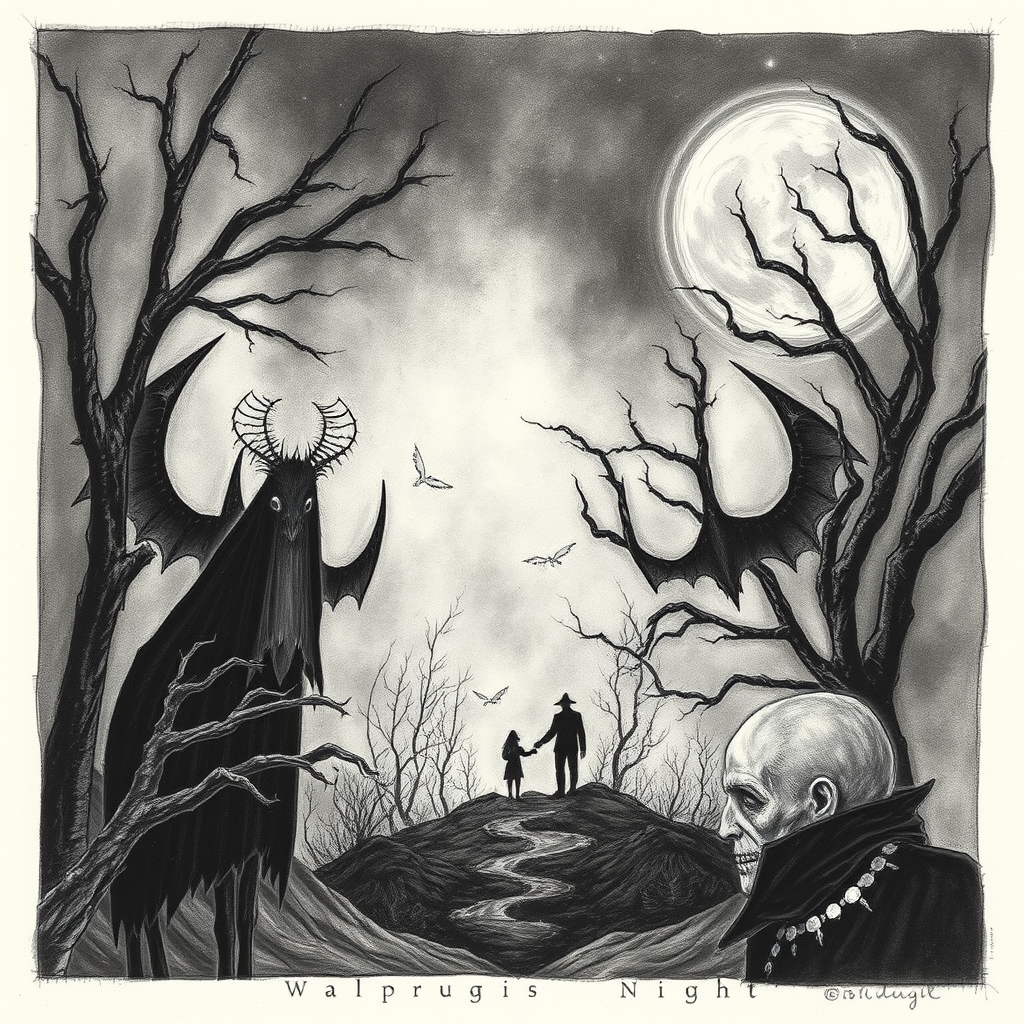 Walpurgis Night::5 Cybergothic Charcoal Illustration::4 creative, expressive, intricate, textured, traditional medium, charcoal, premium-grade paper, limited edition, critically acclaimed, by Ross Tran, Antonio J. Manzanedo, Alberto Vargas, dynamic lines, expertly shaded, keen attention to detail::3 distorted, poorly crafted, lacking depth, inconsistent shading::-2