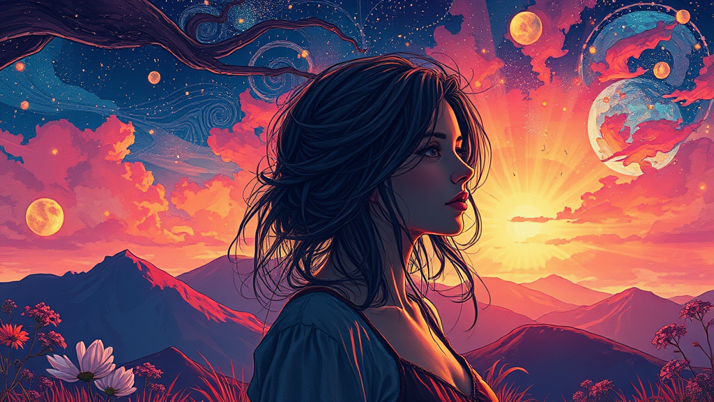 Wandering alone in introspection, seeking calm and finding inner peace, centered in stunning visual splendor, showcasing intricate and highly detailed artistry, breathtaking in its beauty and precise in line art, vibrant and cinematic in scope, inspired by Anna Dittman, featuring a dynamic full-body pose, exceptional quality, 8k resolution with sharp focus, influenced by Carne Griffiths, with beautiful lighting—excluding any low-quality elements, errors, or unwanted artifacts, ensuring anatomical accuracy and artistic integrity throughout.