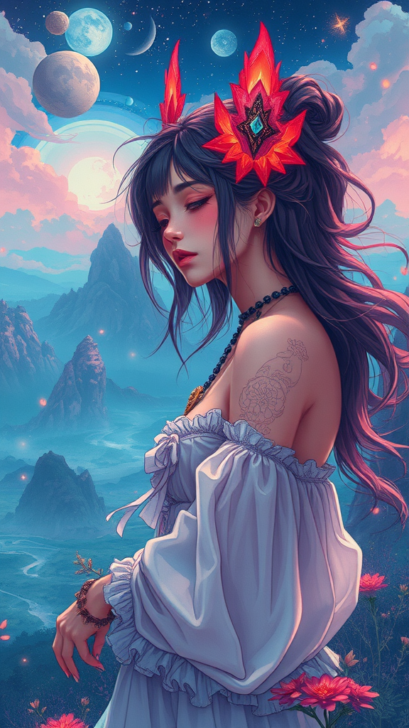 Wandering in solitude, lost in thought, Ahri seeks inner peace, centered in a stunning visual landscape. This scene captures intricate, highly detailed, breathtaking beauty with precise lineart and vibrant colors. The composition is comprehensive and cinematic, inspired by Anna Dittman's style, showcasing a full body in a dynamic pose with incredible quality and clean focus, reminiscent of Carne Griffiths' works. The artwork boasts beautiful, low lighting, ensuring clarity and emphasis on aesthetics. The result is a harmonious blend of artistry, free from imperfections or distortions, celebrating elegance and serenity.
