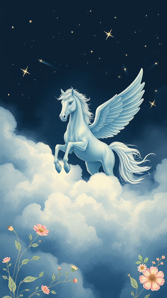 Whimsical apparel design featuring a majestic Pegasus, soaring through a misty, velvety cloudcape with wispy tendrils, set against a midnight indigo background, with subtle, hand-drawn illustrations of shooting stars and delicate, hand-painted floral patterns in soft pastel shades, evoking a dreamy, ethereal atmosphere, underpinned by a delicate filigree of interconnected wavy lines, rendered in a high-definition, 16k-resolution digital art style reminiscent of Alex Ross's classic, hyper-realistic illustrations, with cleverly integrated texture overlays to give the design a tactile, organic feel.