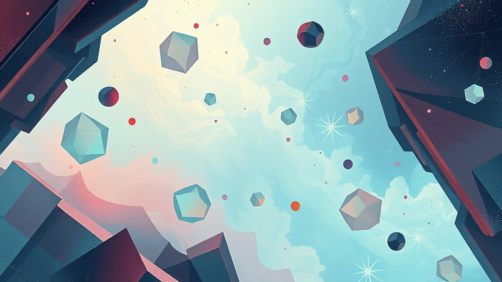 Whimsical dreamscape of minimalistic enchantment, featuring floating geometric forms interwoven with fluid, ethereal patterns against a backdrop of high-contrast hues, evoking a sense of endless curiosity and fantastical abstraction.