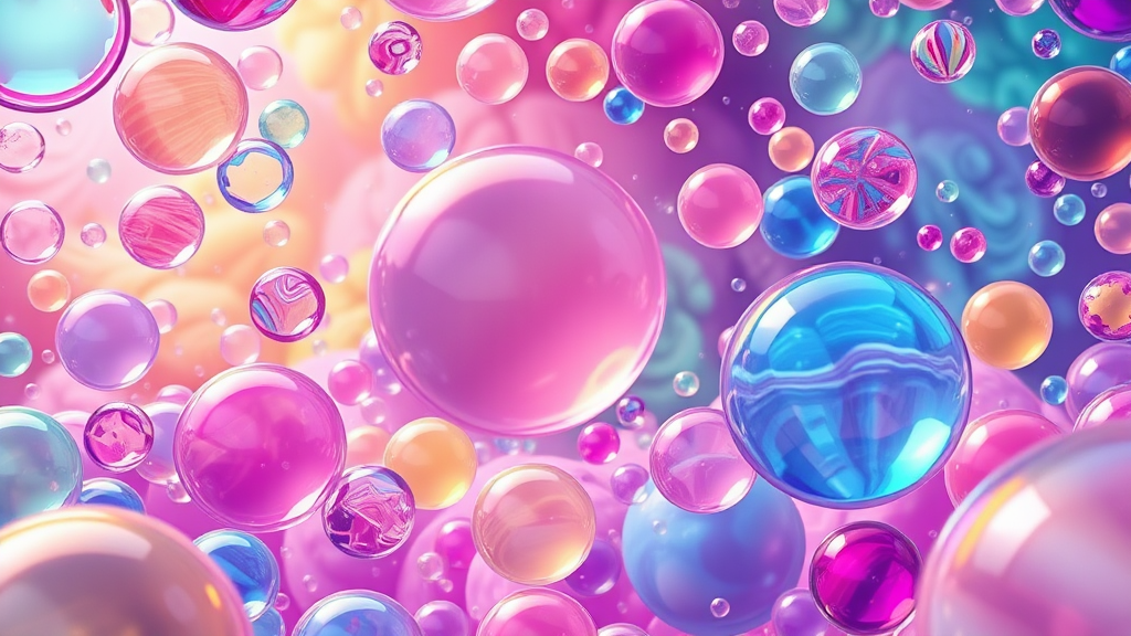 Whimsical floating spheres populate a kaleidoscopic realm where vibrant hues paint the landscape, creating an ever-shifting tapestry of wonder in this Bubbleverse of infinite color variations.
