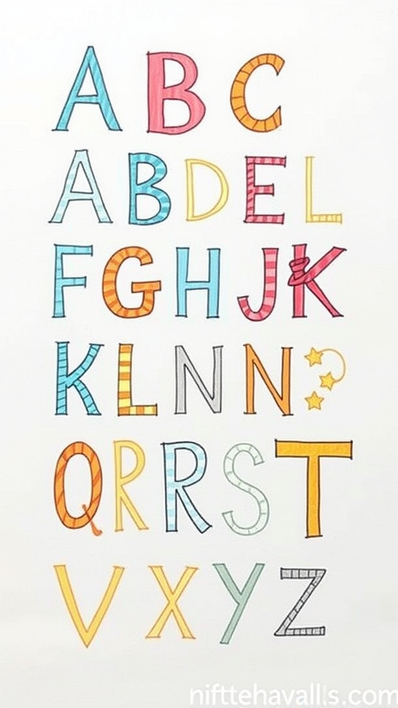 "Whimsical letters sketch on paper: an illustrated alphabet with playful variations and inventive flair."