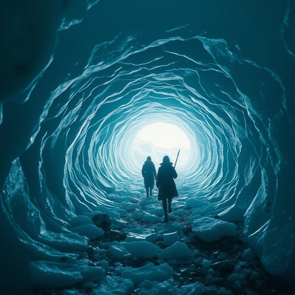 Whispers of bygone wind chimes echoed in the overcast stillness, a luminous glow seeping from my ears, resonating with a distant hum of glaciers cascading towards me. In Antarctica, a network of serpentine tunnels echoed beneath fragile ice, where figures moved with purpose, their presence both mesmerizing and formidable, bathed in the ethereal allure of fantasy digital art and captured in mesmerizing detail by octane render.