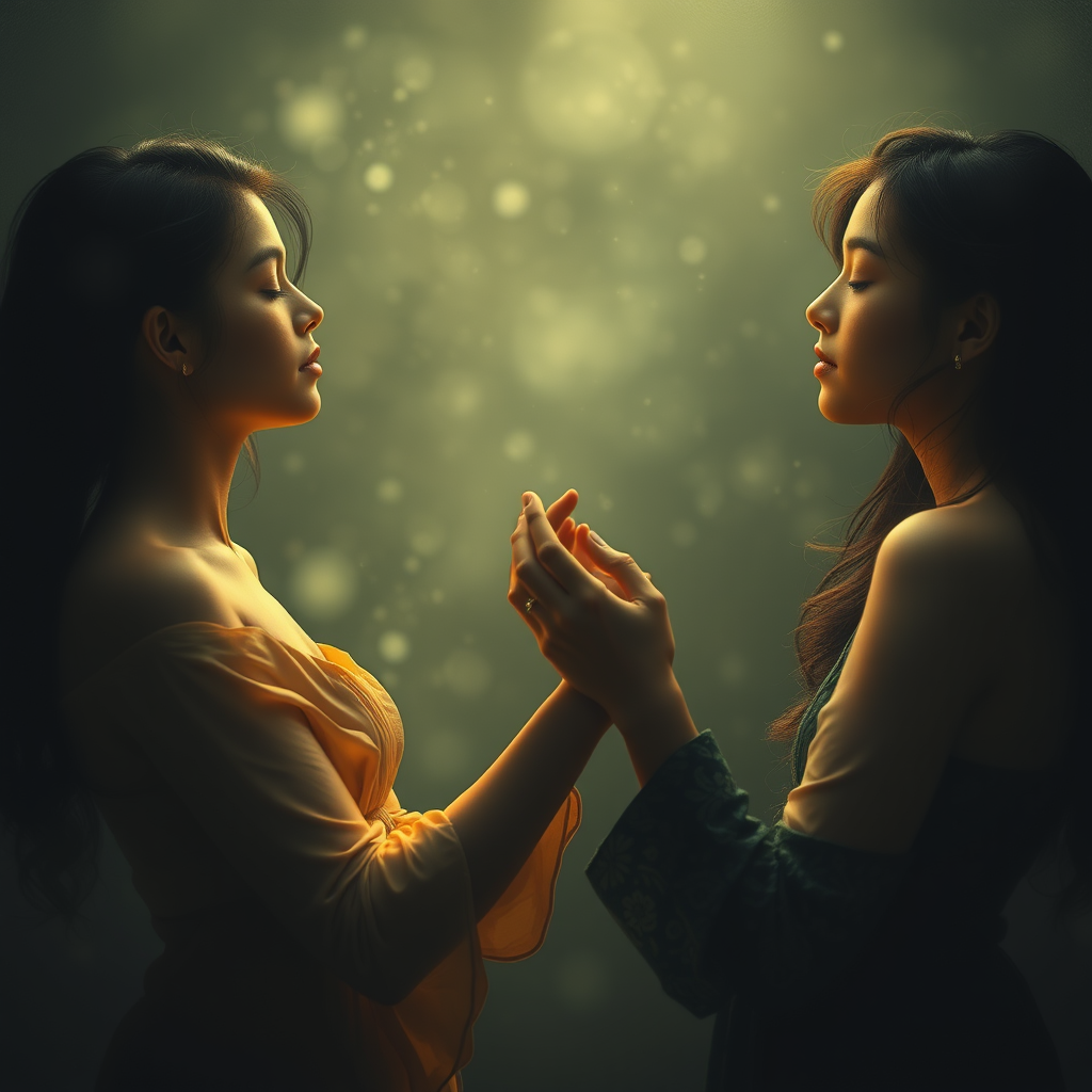 Whispers of silence danced among the trio as they exchanged secrets with wide eyes closed, ears turned inward, and voices muted, sharing a bond beyond words.