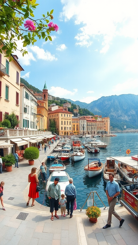 Wide angle perspective of Riva del Garda capturing the Mediterranean charm of an Italian harbor scene, with a touch of wet paper texture and watercolor vignette, dreamy ambience, vivid colors, and intricate detailing. Soft, gentle lighting brings a sense of tranquility, akin to a master artist's refined touch. Incorporating subtle imperfections with slightly blurred, low resolution hints, featuring people with quirky anatomy amidst vibrant surroundings, creating an imaginative and whimsical atmosphere.