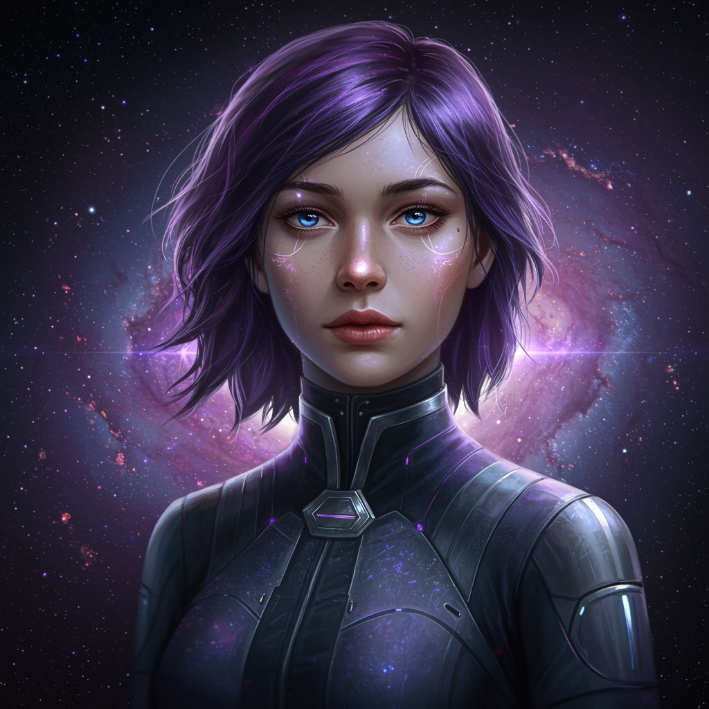 woman in character portrait space art highly detailed official artwork fantastic screenshot art hyperrealism dynamic lighting vivid galaxy backdrop celestial reflections interstellar attire ethereal ambiance captivating gaze cosmic elegance radiant hues intricate textures neural enhancements zero-gravity strands of hair atmospheric wonder cosmic allure celestial balance harmonious composition seamless realism visionary dreamscape artistic narrative elevated beauty immersive experience celestial harmony timeless energy spatial serenity galactic mystique universal resonance.