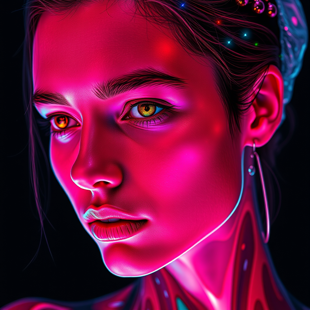 XRAY-inspired image of the model, vibrant and colorful, focusing on macro details, evoking the intricate realism of Yigal Ozeri's work, with a serene monochromatic backdrop, captured in high-resolution 32k. The composition should be raw and unfiltered, maintaining a 93:125 aspect ratio, with a quality setting of 2 and a style that emphasizes the textural depth and visual serenity of the subject. Version 5.1, with settings aligned to a creative exploration of the theme.