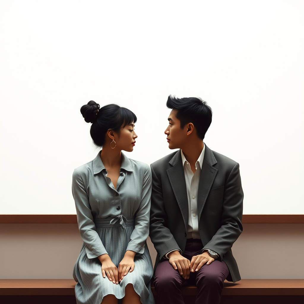 yoshitomo nara:1.4, wes anderson:1.2, modern casualism, vintage flair, sleek minimalism, subtle sensuality, abstract minimalist backdrop, yoshitomo nara:1.4, wes anderson:1.2, contemporary casualism, retro-inspired, refined minimalism.