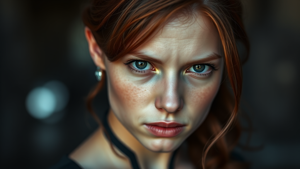 Young Jean Grey, female member of the X-Men universe, gazing directly at the viewer in a portrait-style photograph. Her detailed, realistic skin is captured in an 8k high-resolution image, showcasing hyperrealism with a sharp focus. The photograph uses diffused soft lighting and a shallow depth of field to create a cinematic ambiance. The photo is a full-length frame, rendered in high detail with a RAW color aesthetic. The subject's expression is relaxed and piercing, adding to the image's intensity. Note: the image is devoid of low-resolution qualities, text errors, or any form of distortion and maintains a consistent realism without imperfections such as duplicates, anatomical errors, or photographic noise.
