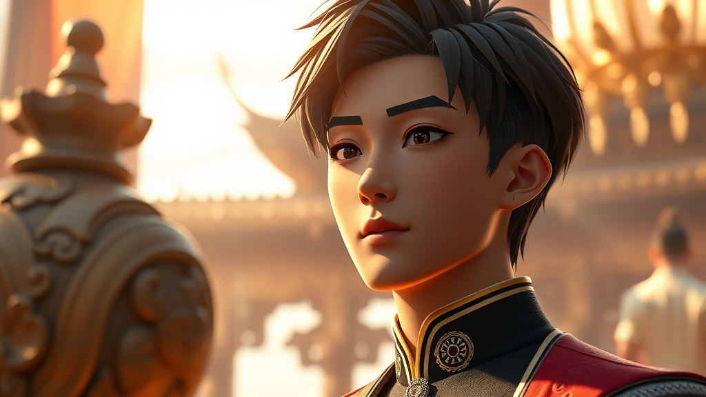 Young visionary designer, male, ambitious, opulent, clear vision, polished professional, character development, animated persona, octane render, 3D modeled, influenced by Kentaro Miura, stunning natural illumination, soft volumetric glow, beautifully crafted details.