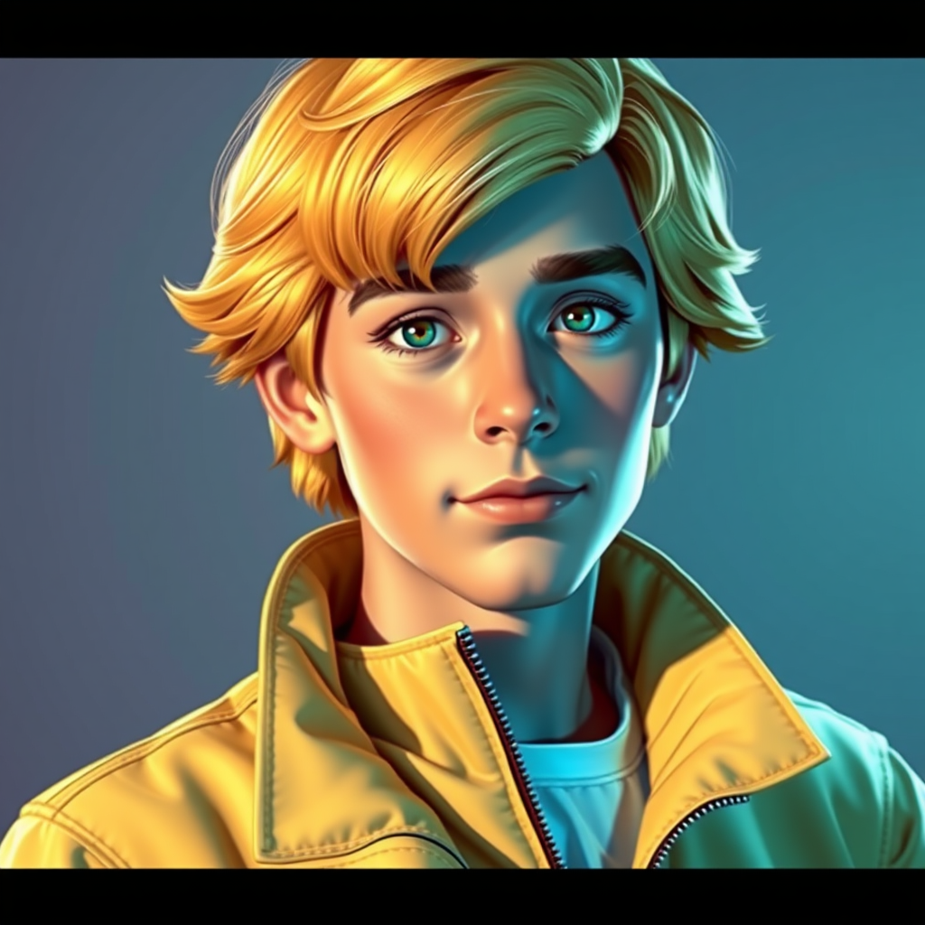Youthful Fred from Scooby-Doo, vivid portrait, cream jacket, golden hair, confident, crisp focus, digital illustration, solitary character, imaginative concept, enhanced details, striking lighting, highly intricate, refined rendering.